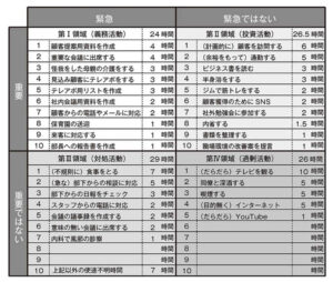 例えば、第一領域が多いということは、タスクが 多く時間に追われているということになります。