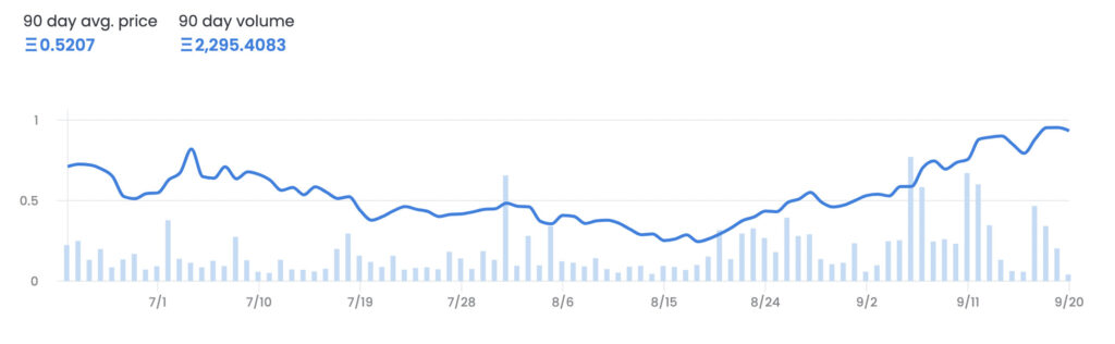 0.3ETHを下回っていたのですが、現在1ETHに迫る勢い!!!