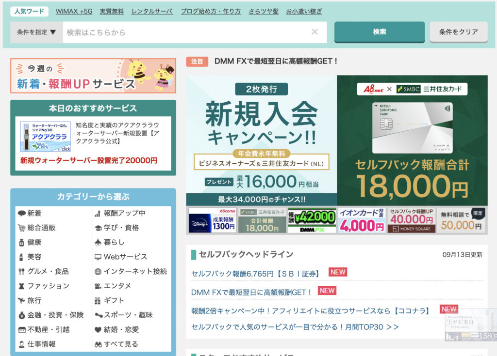 僕は国内最大級のASPである「A8net」です