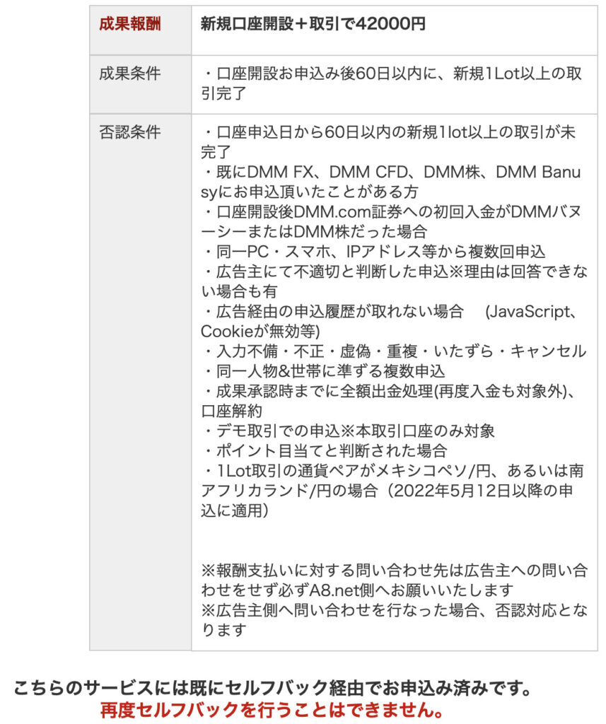 セルフバックには条件が詳細に書かれています